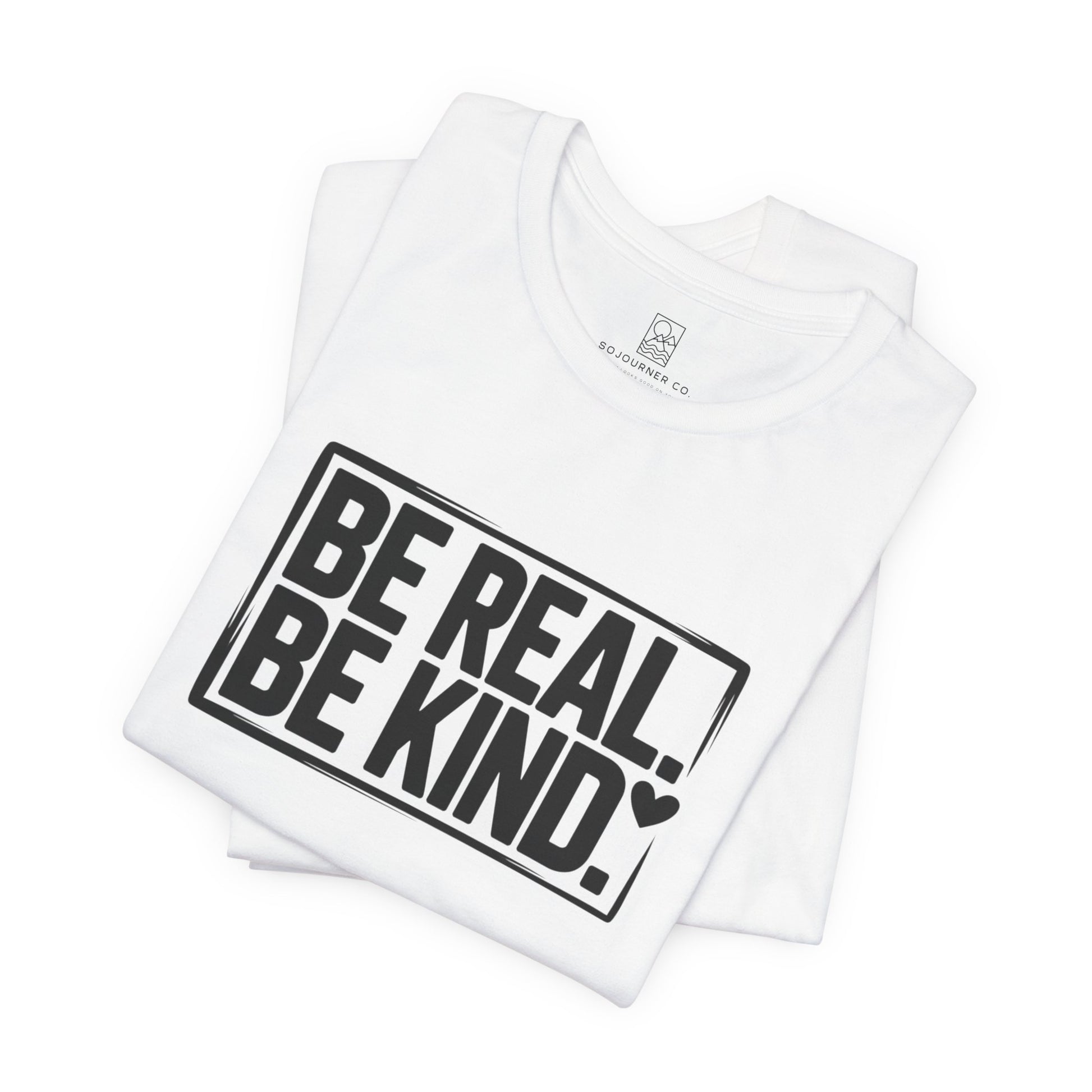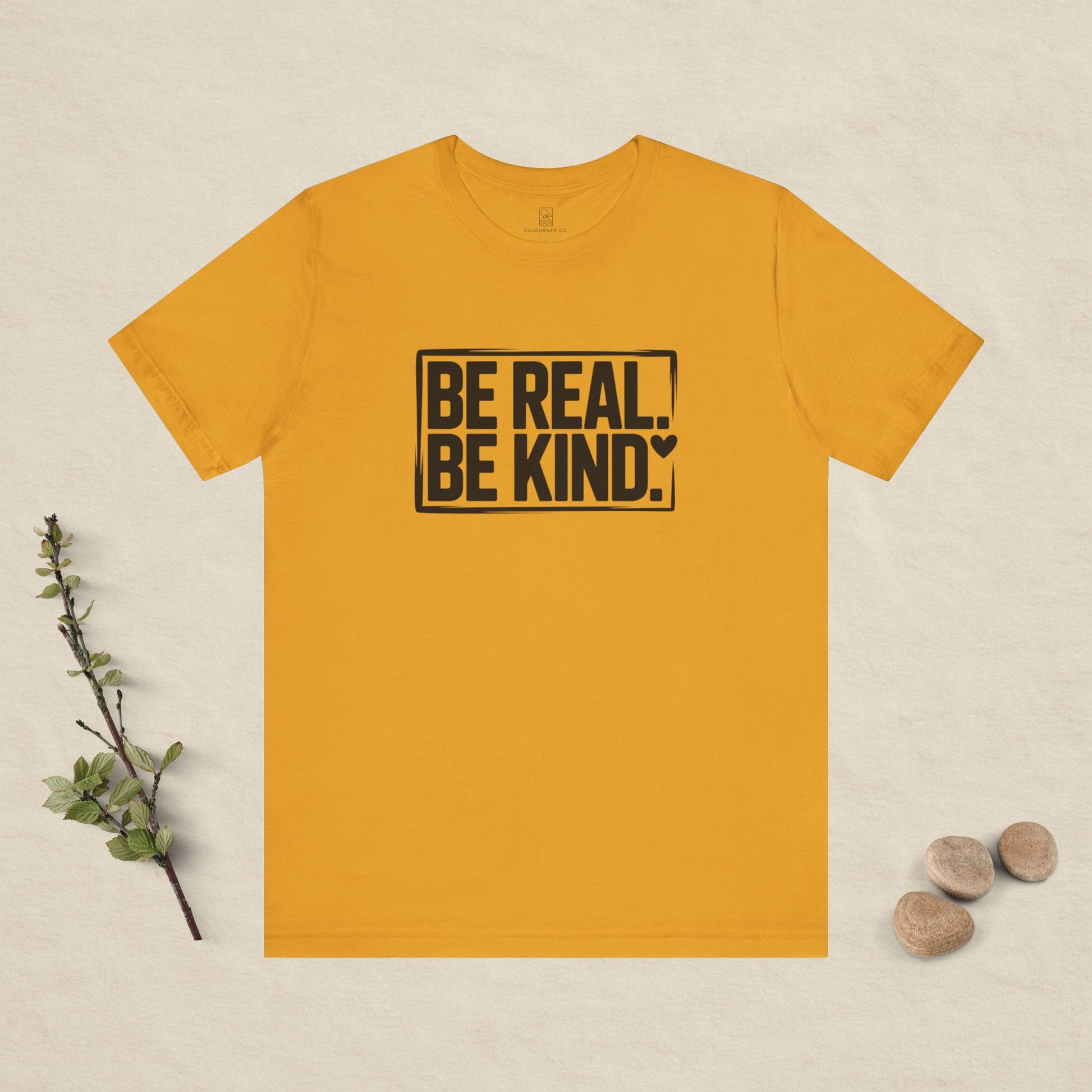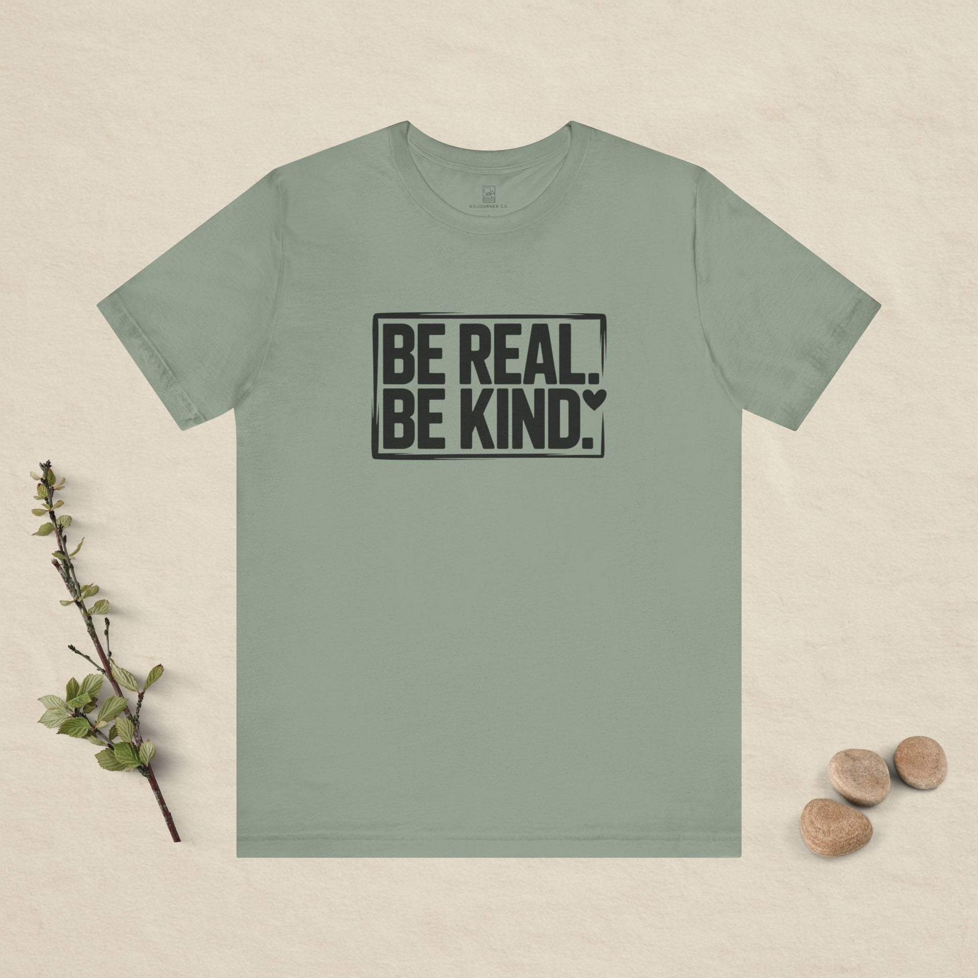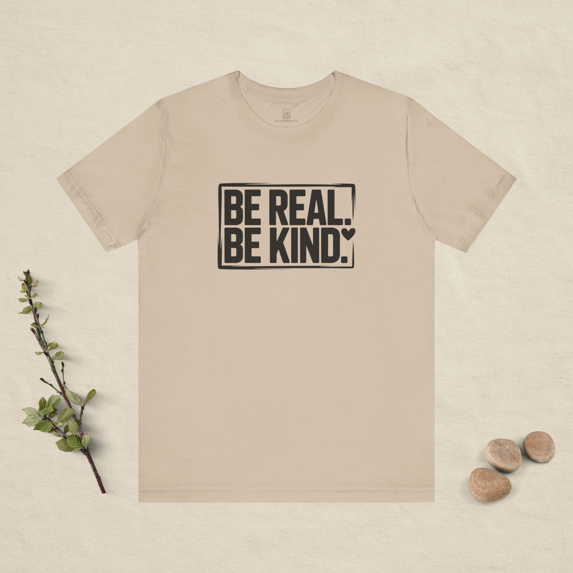 A simple reminder that never goes out of style. The Be Real. Be Kind. tee brings a bold, straightforward message into a clean, minimalist layout — an easy everyday piece that feels good to wear and even better to share.