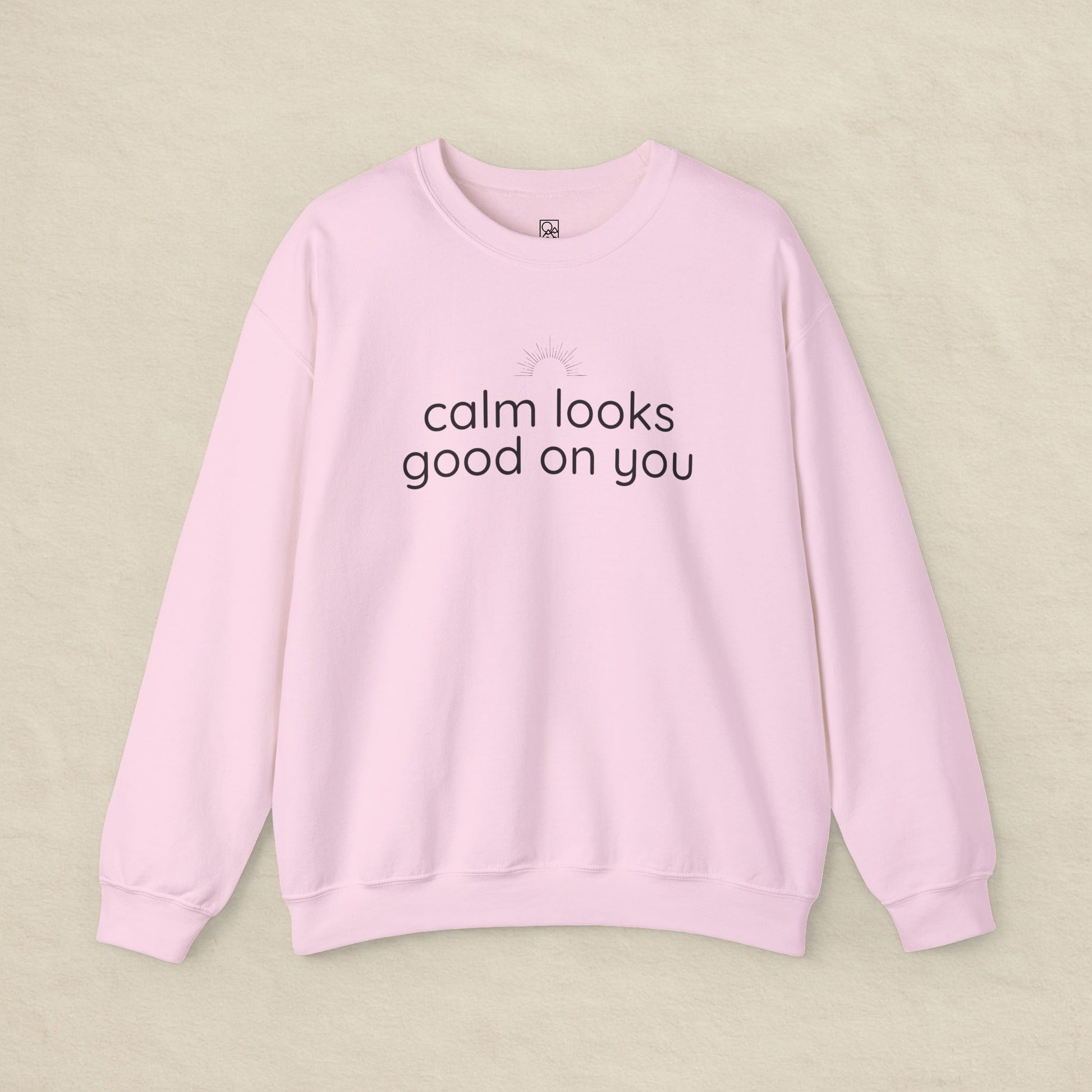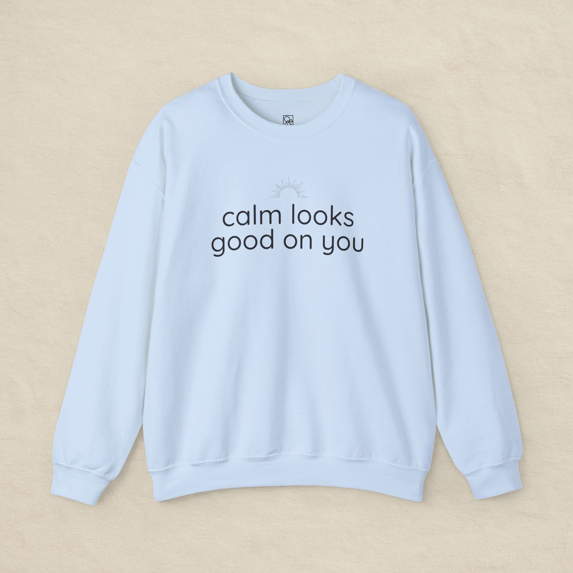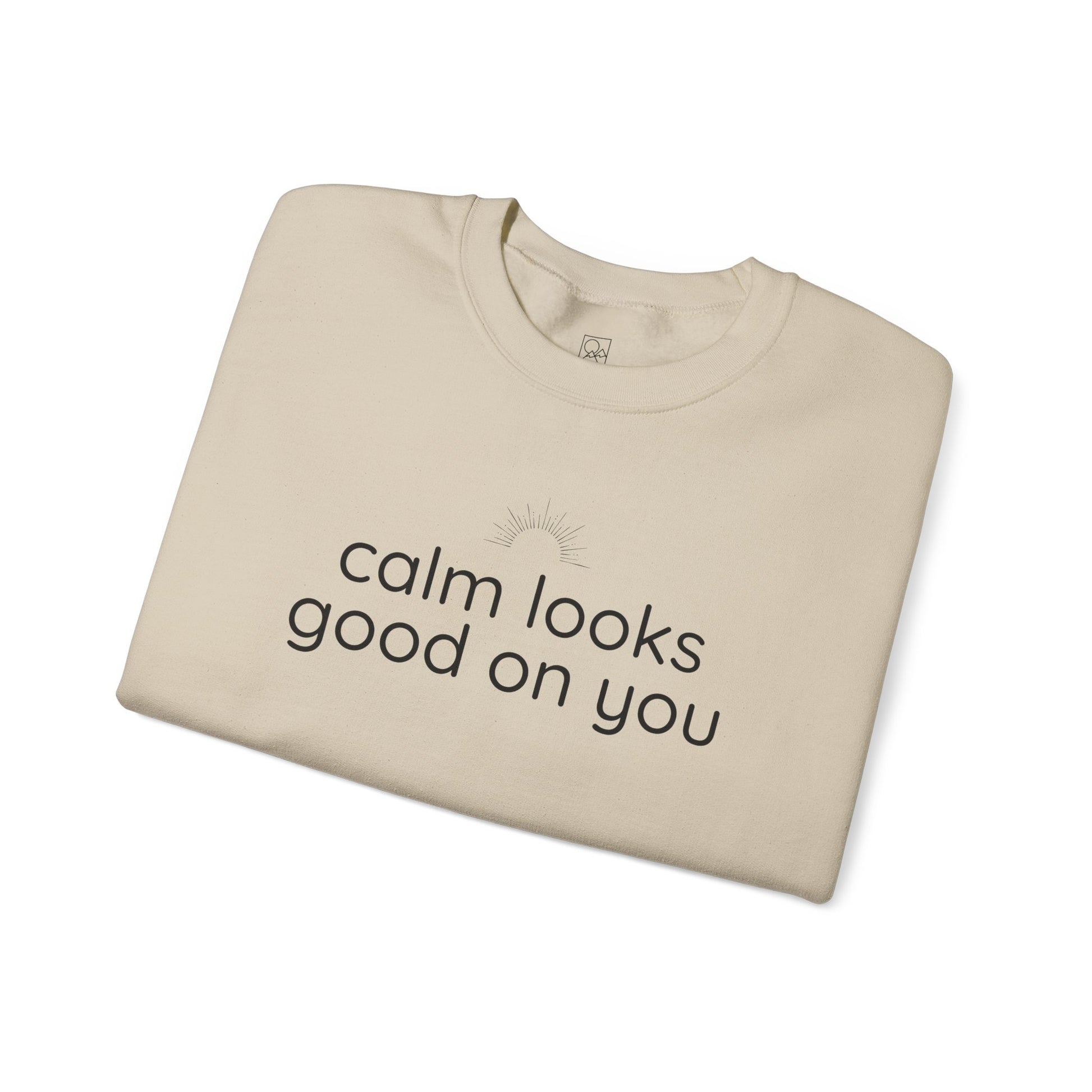 Calm Looks Good on You – Vertical Text Fleece Sweatshirt