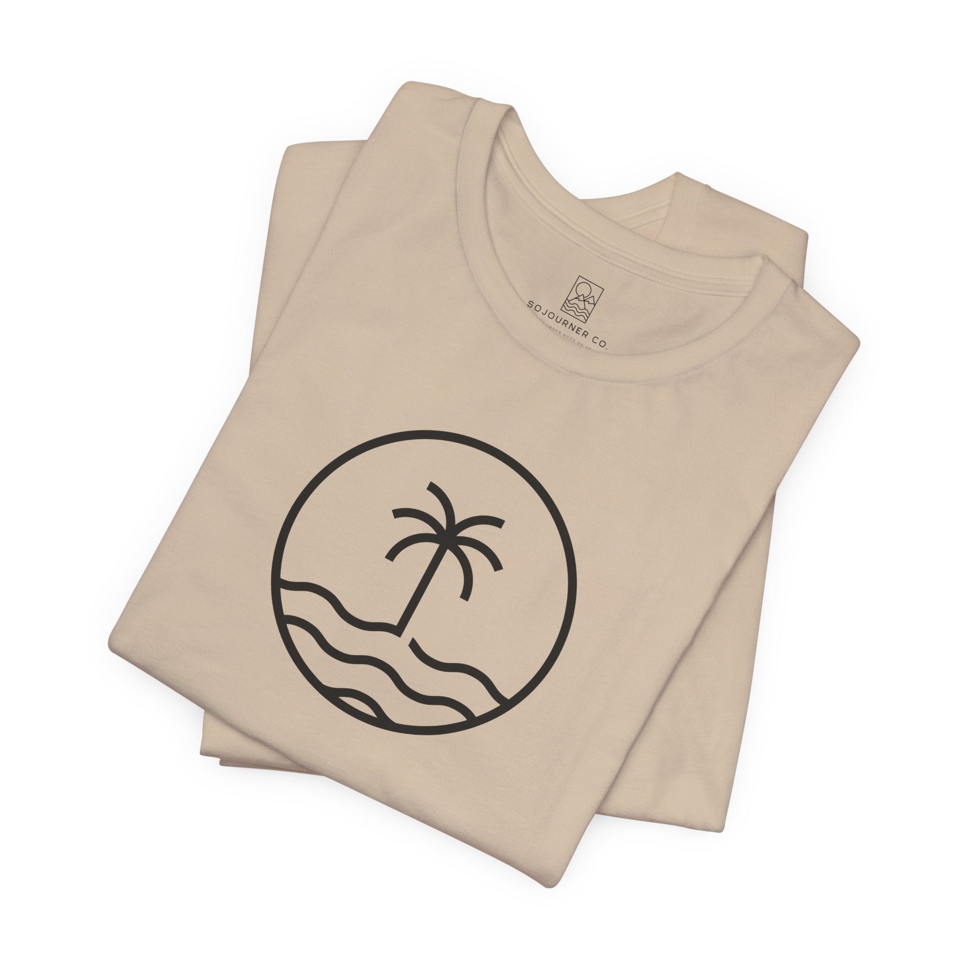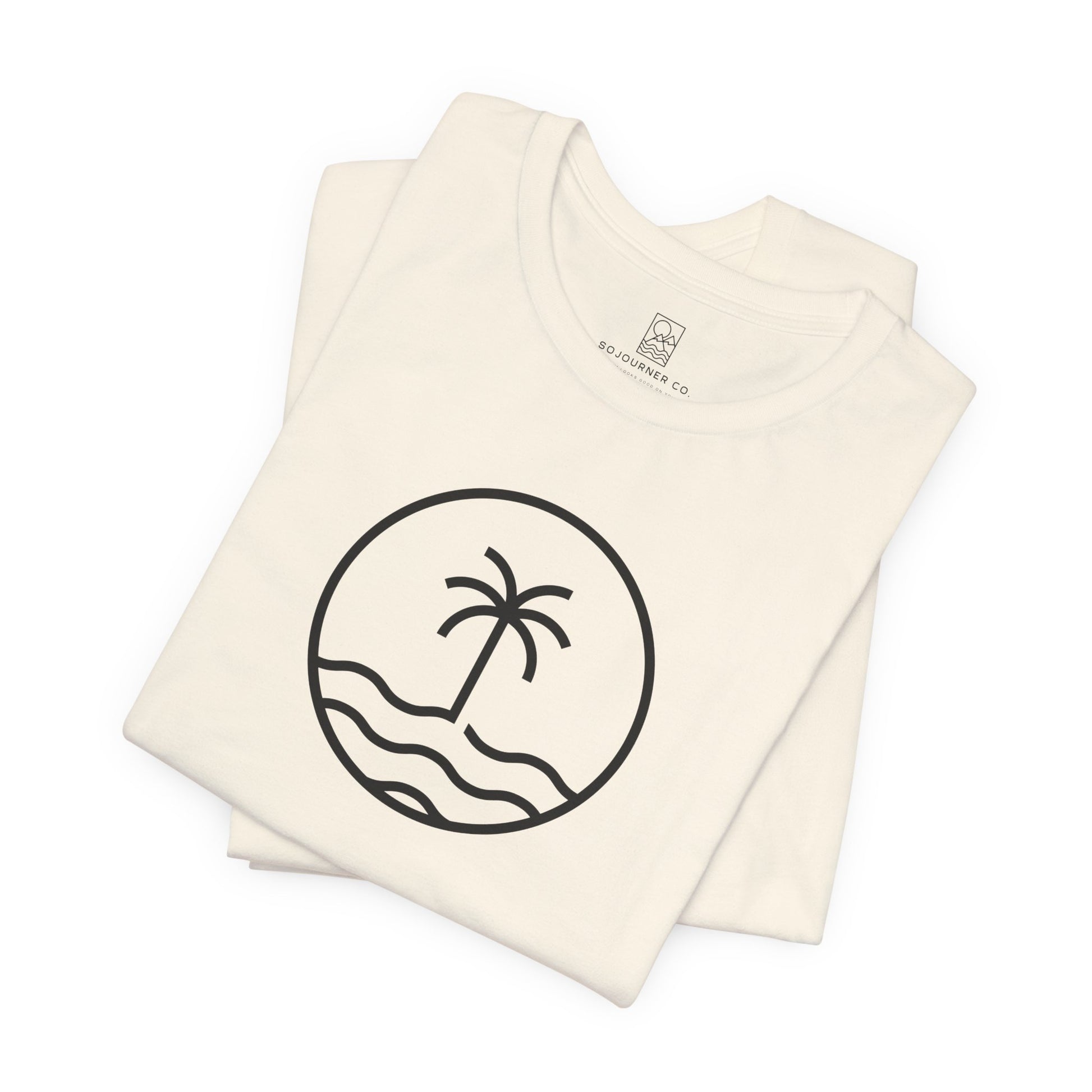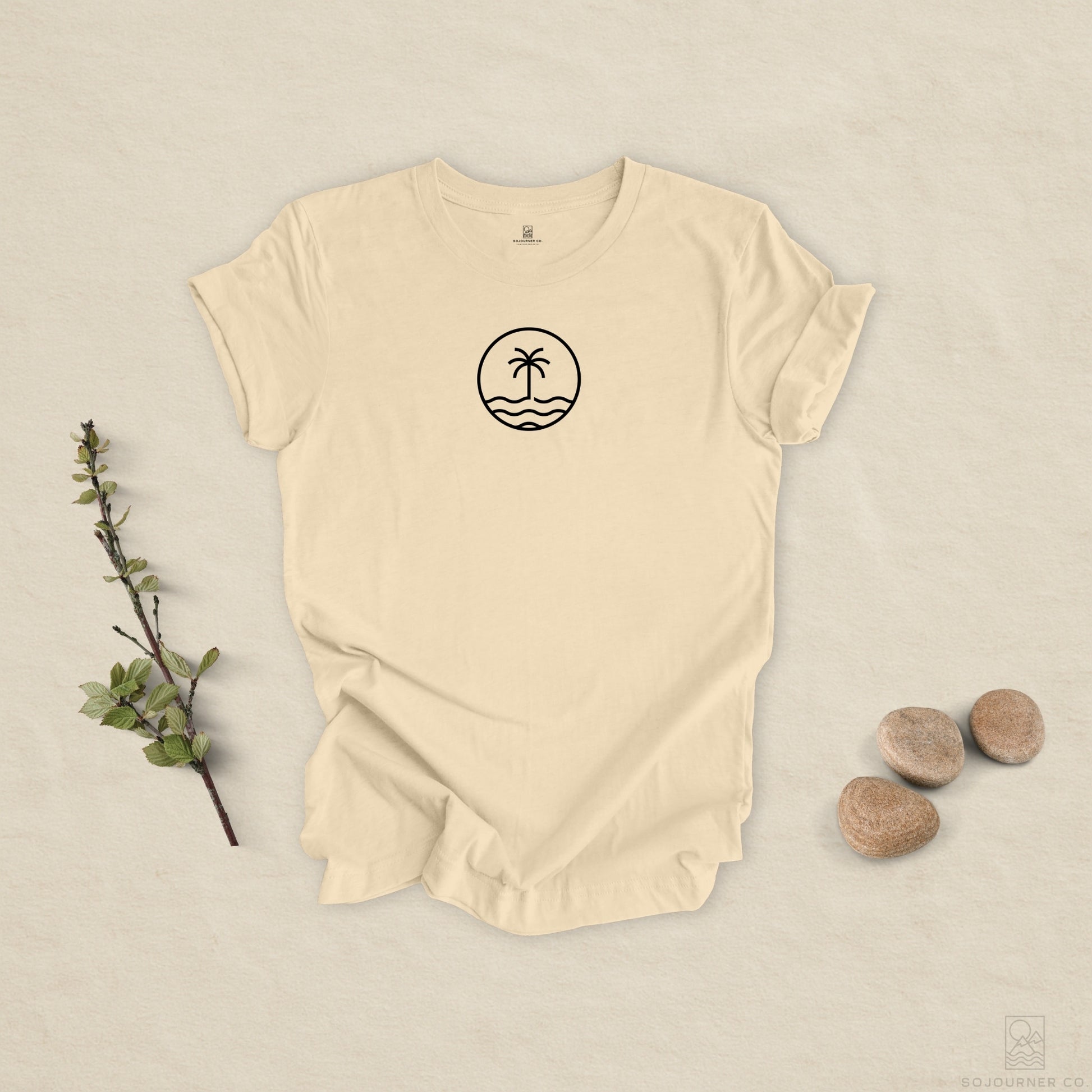 Coastal Circle Tee – Palm & Waves Minimalist Design