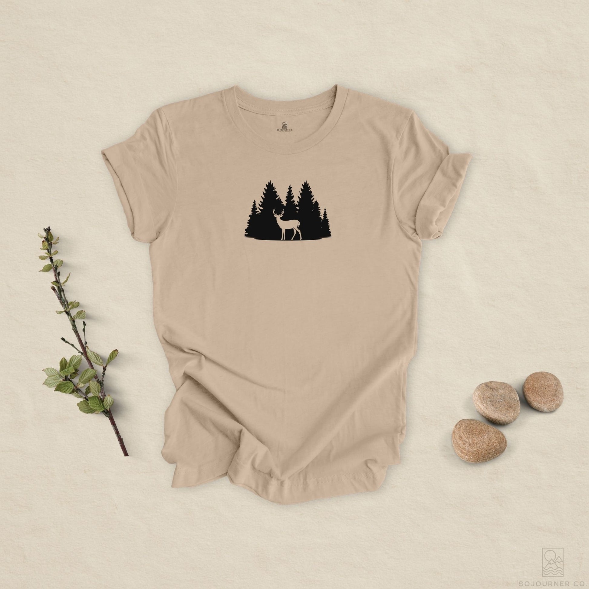 Quiet strength meets natural simplicity. This peaceful forest scene with a lone deer standing among the pines evokes still mornings and woodland calm. A bold, minimalist silhouette that pairs beautifully with our soft neutral tones.