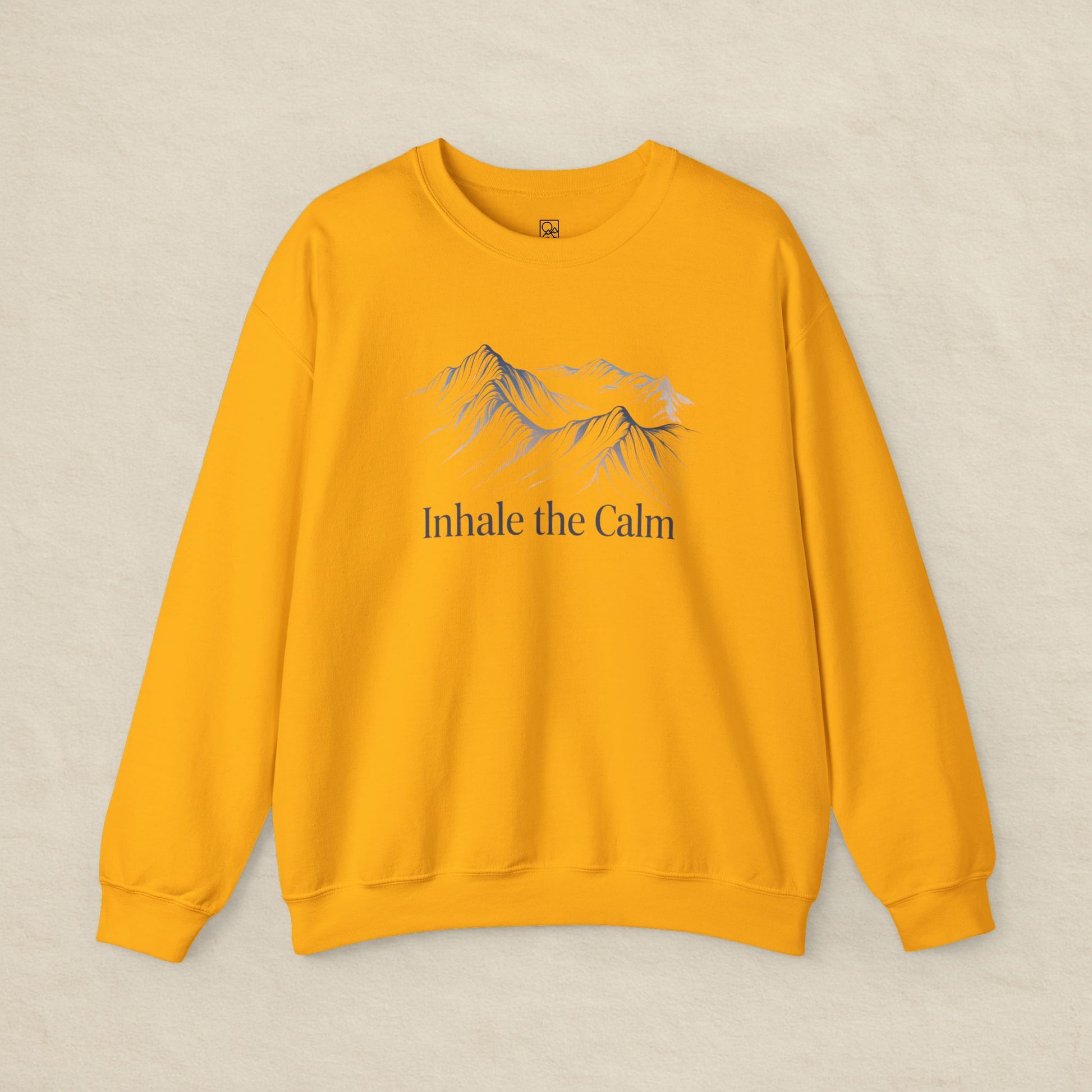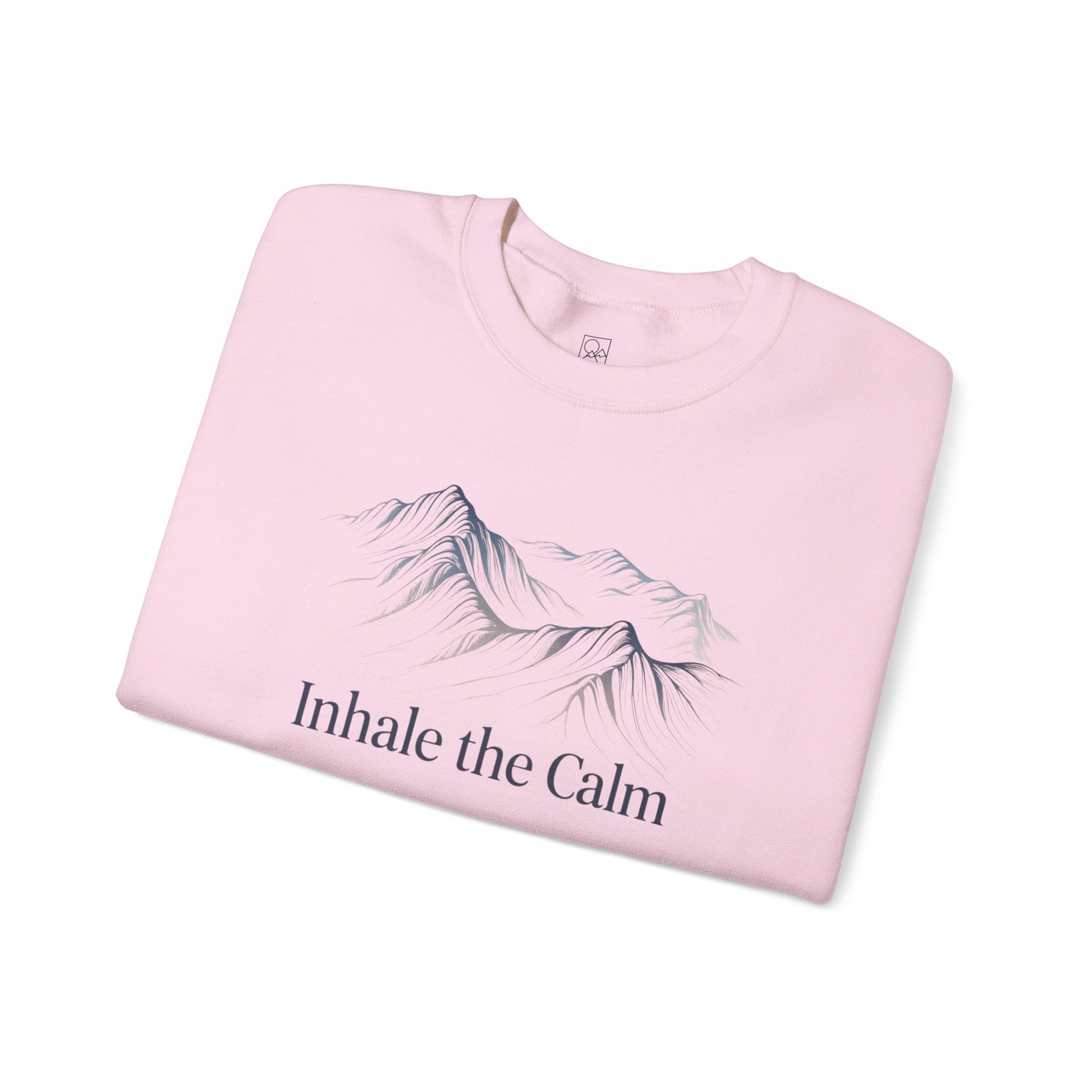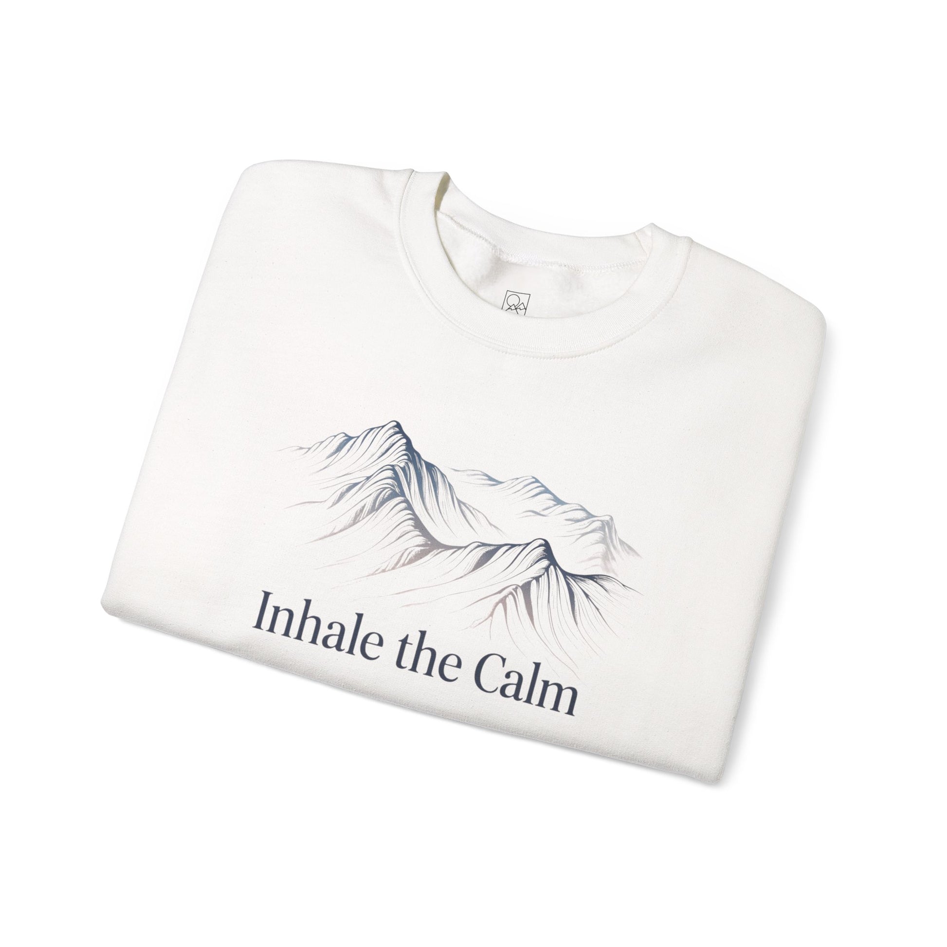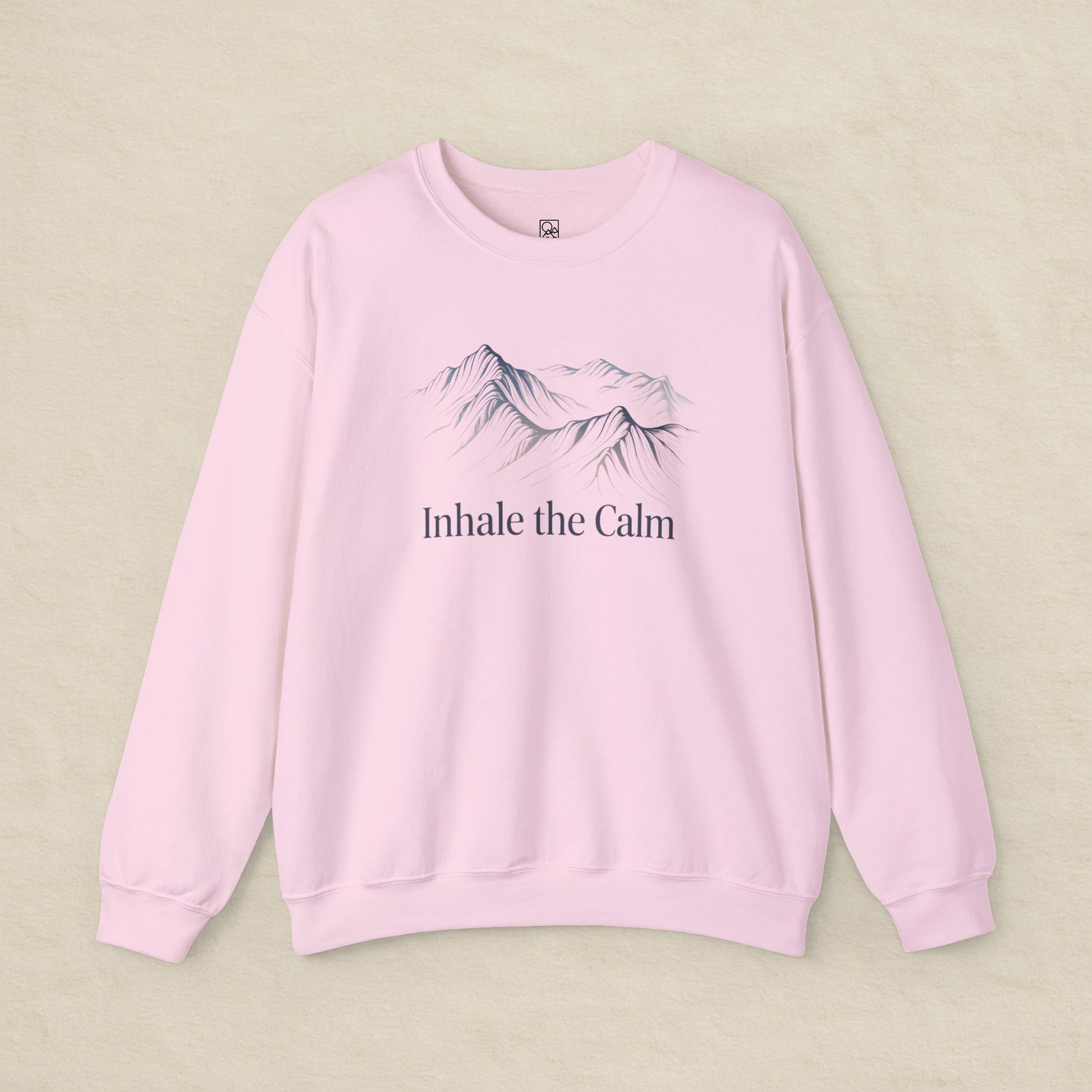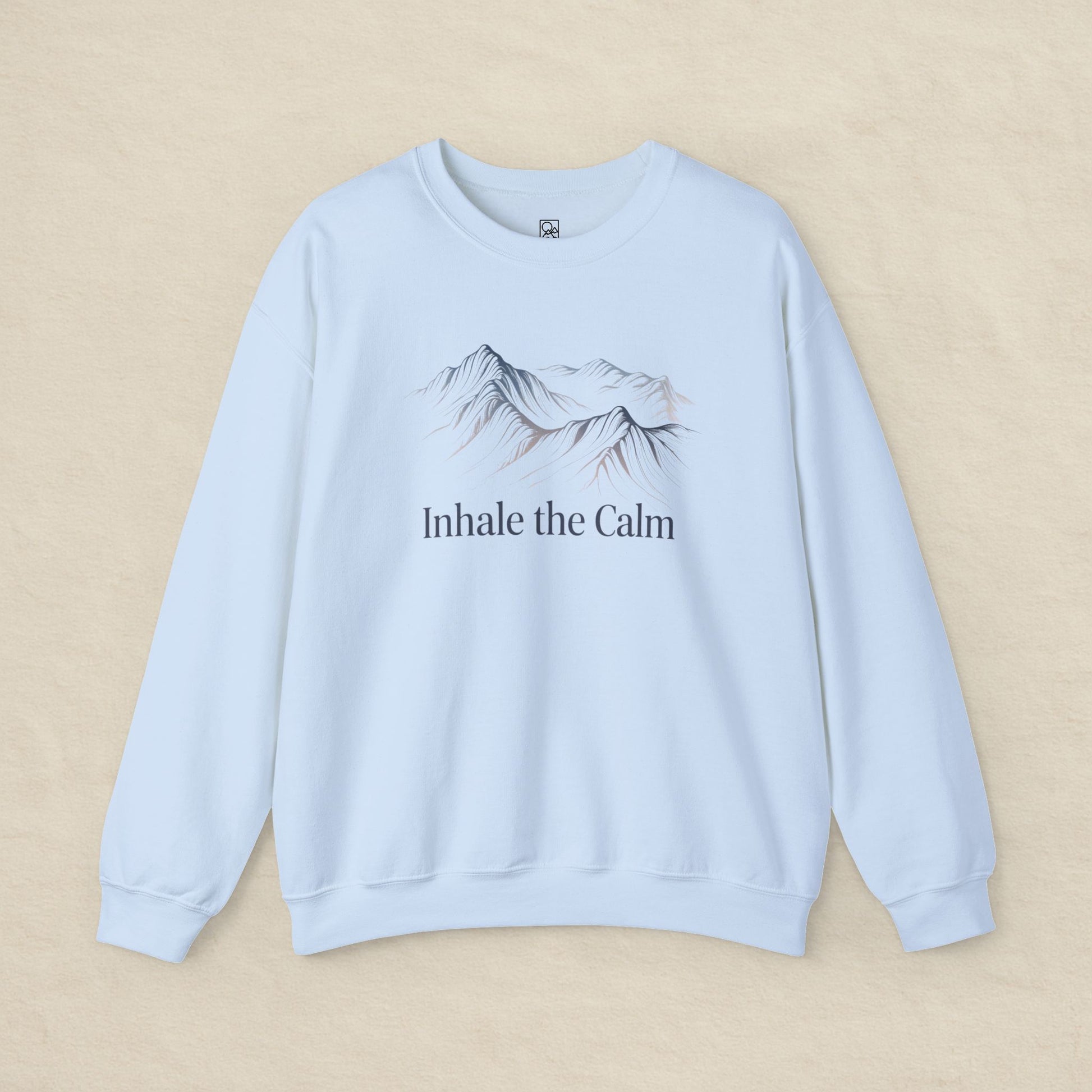 The Inhale the Calm sweatshirt features a soft mountain sketch that gently fades into the fabric, creating a peaceful and grounding moment you can take anywhere.