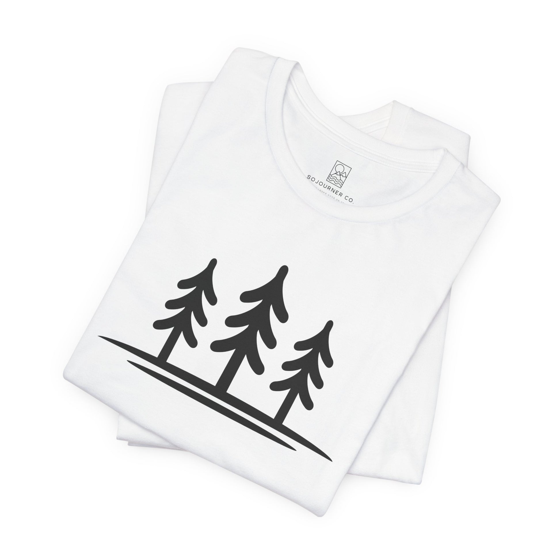 Bring the calm of the forest with you. This minimalist three pines design reflects the quiet strength of nature, captured in clean black line art. A subtle, modern symbol of groundedness and slow living — perfect for layering or solo wear.